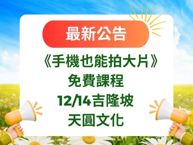 📸 《手機也能拍大片》免費課程|12/14吉…