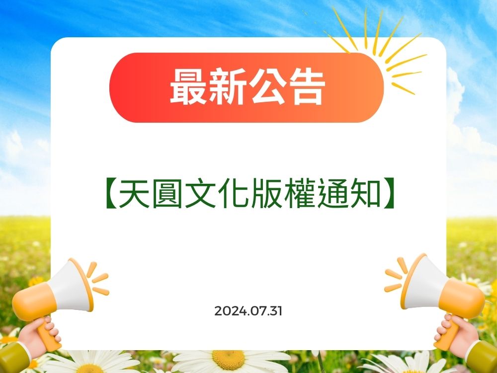 請勿任意於公開社群平台發表經「轉錄」或「重製」等法律上影響天圓文化著作權的官方影片或圖片