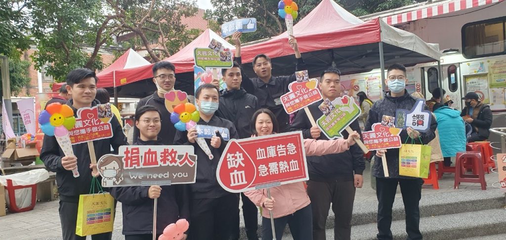 1. 天圓文化,不只是在台北地區推動公益捐血活動,我們在台灣各地均有常態性的舉辦。目前已在桃園、新竹、台南、高雄、甚至馬來西亞,各地區的天圓志工,紛紛自發性的在自身所在之處,邀約鄉親鄰里,一起投入來捐血做公益。