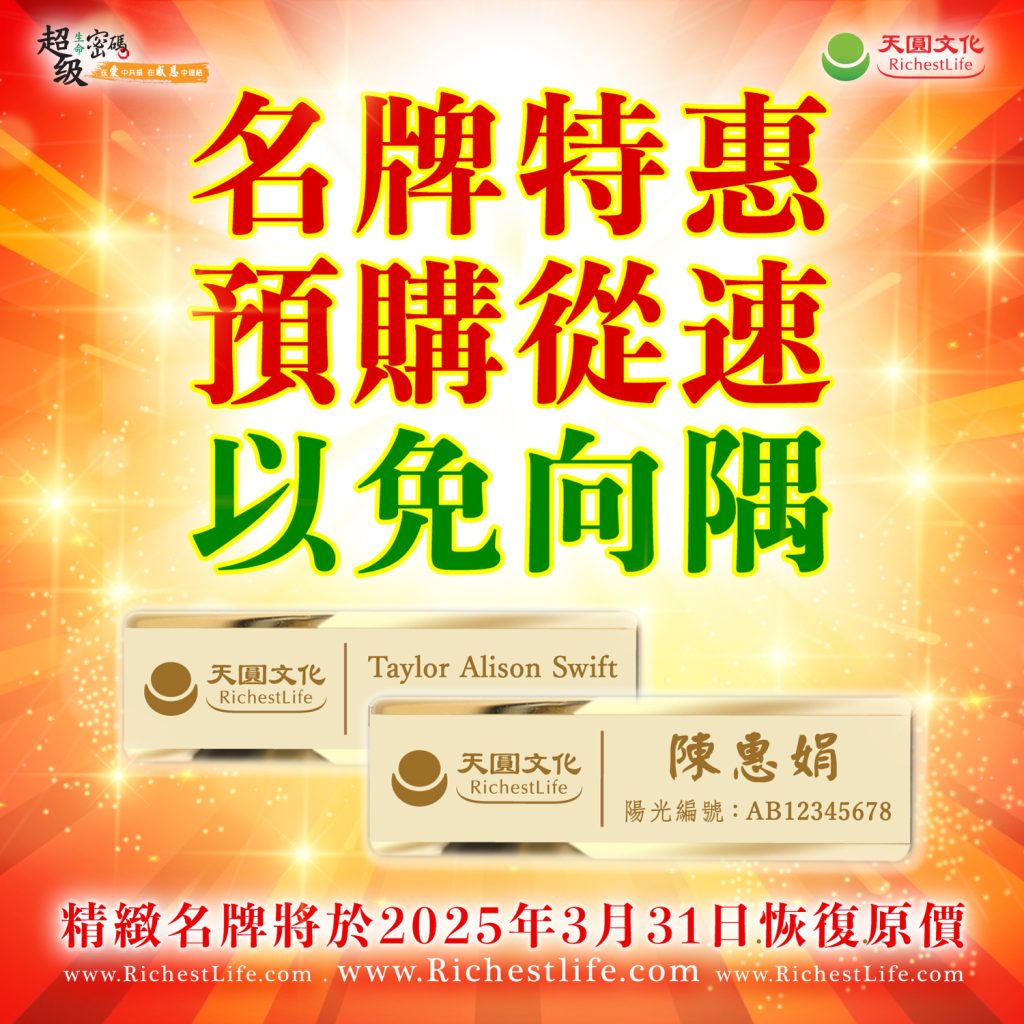 1. 名牌1人僅限購買1次,1次只能購買1個天圓名牌。