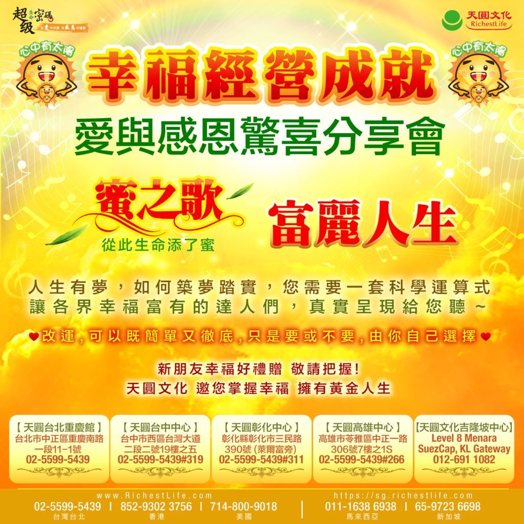 —— 每周四《 幸福經營成就 · 蜜之音 · 富麗人生愛與感恩驚喜分享會 》 ——