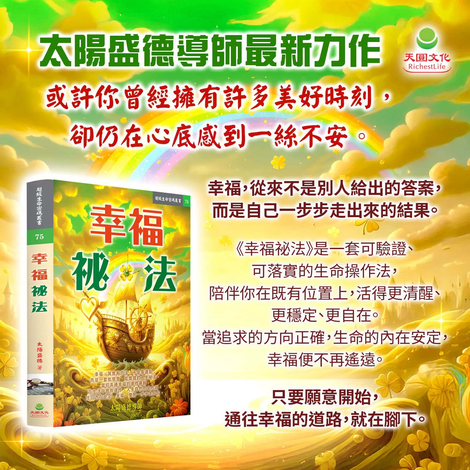 《幸福祕法》指出,幸福從來不是偶然降臨的幸運,而是一套可以理解、實踐與累積的生命法則。太陽盛德導師以多年觀察與實證經驗,揭示幸福運作背後的宇宙因果邏輯,說明人們的起心動念、處事態度與每一個選擇,如何在無形之中形塑人生的境遇。🌹